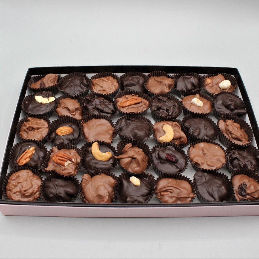 Oh clusters....the ageless combination of chocolates and nuts! Mix and match from a large variety of nuts and chocolate types! Contains 32 to 35 Pieces.