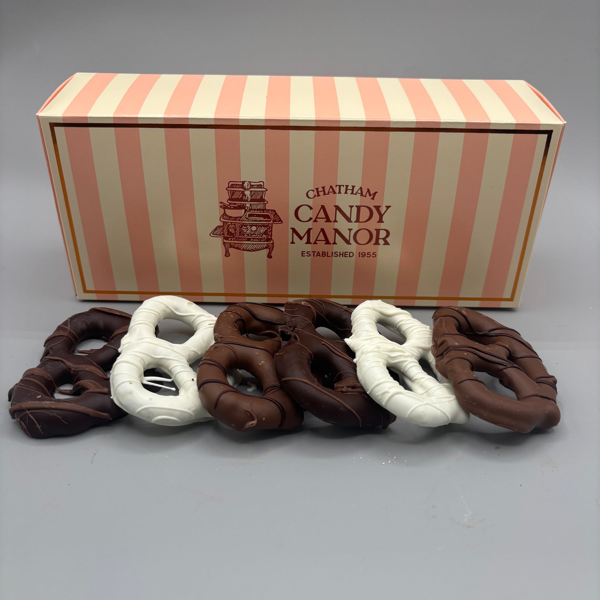 The ultimate sweet and salty treat is the chocolate covered pretzel! These chocolate pretzels will surely cure your sweet tooth, or get you bonus points if you are gifting! The chocolate covered pretzels are available in milk, dark and white chocolate! Contains 20 Pretzels.